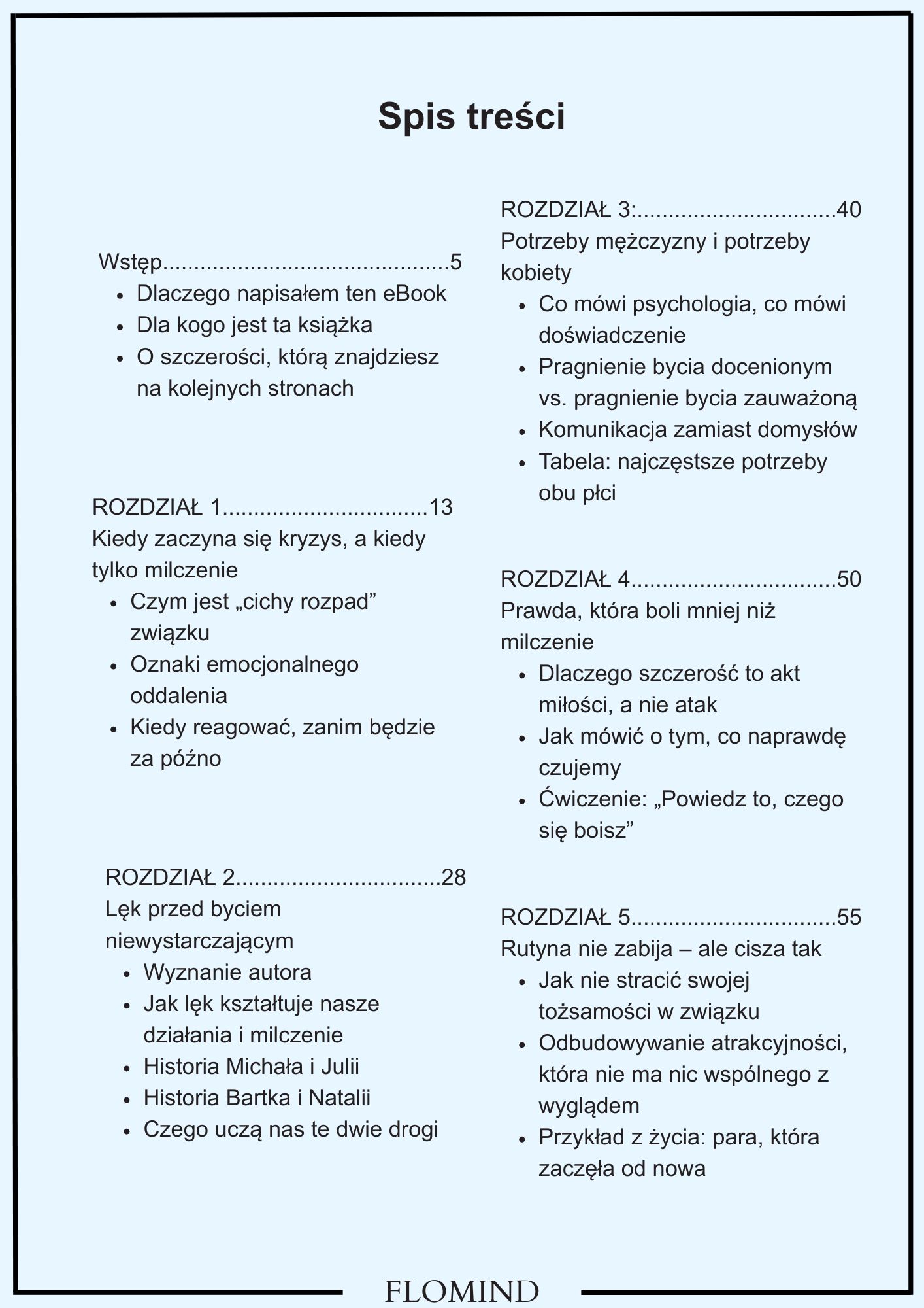 Znajdziesz za to psychologię relacji, realne historie, ćwiczenia i słowa, które pomagają nazwać to, co często czujemy — ale nie umiemy o tym mówić.